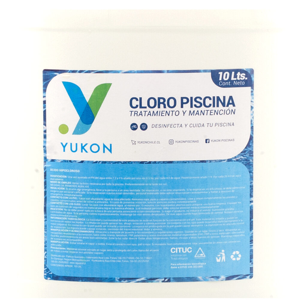 ¿Necesitas una solución rápida y efectiva para tu piscina? En Yukon.cl te presentamos nuestro Cloro Líquido en bidón de 10 litros, un potente desinfectante de alta pureza diseñado para actuar al instante contra bacterias, hongos y microorganismos.