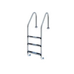 Escaleras con pasamanos modelo Standard, para piscinas enterradas, fabricadas en tubo Ø43mm de acero inoxidable acabado pulido brillante. Peldaños en acero inoxidable. Su cuidado diseño garantiza seguridad contra todo tipo de deslizamientos o cortes. Suministradas con anclajes de fijación, previstos para conexión a toma equipotencial.