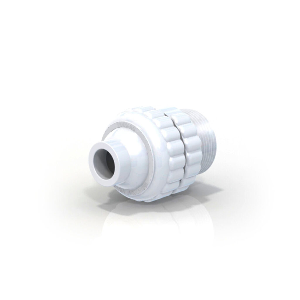 Retorno orientable para piscinas de hormigón, con cuerpo para exterior de rosca macho de 1 1/2″, y boquilla esférica con pico de ø 19mm. Instalados por debajo del nivel de agua, han sido diseñados para producir flujo en dirección al skimmer o toma de fondo, y así favorecer al filtrado y limpieza de la piscina.